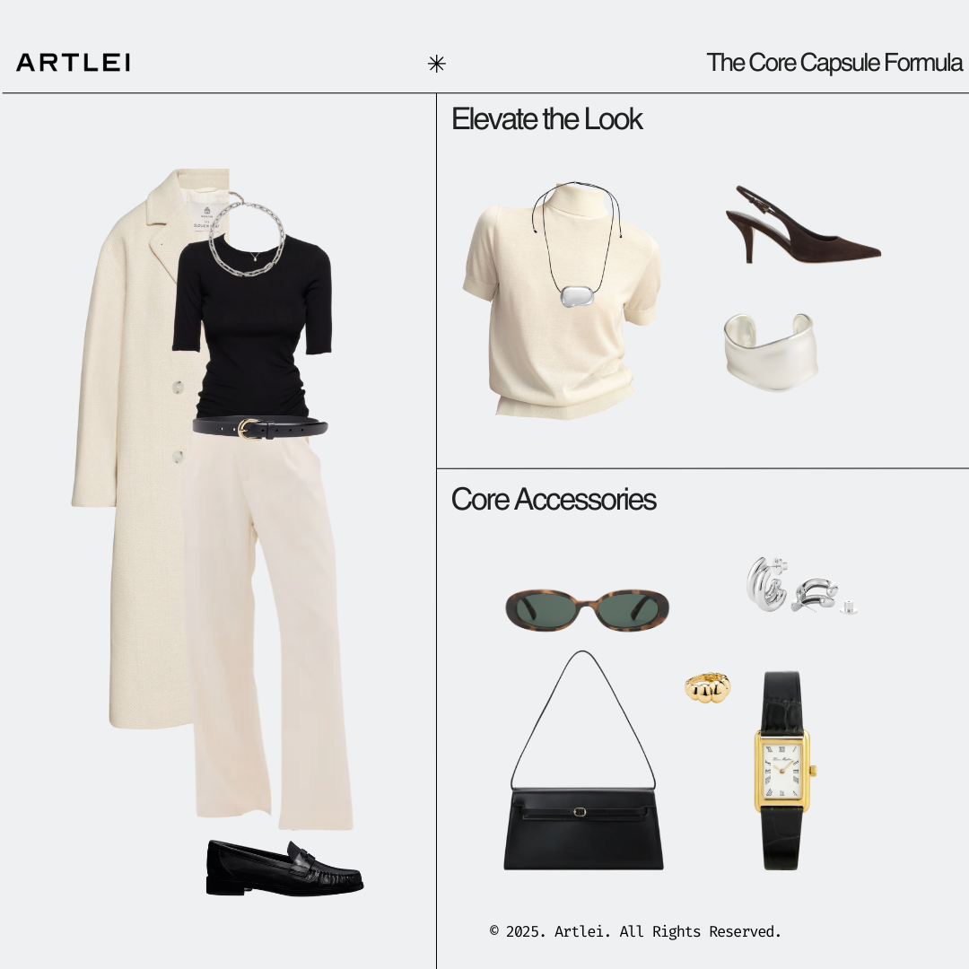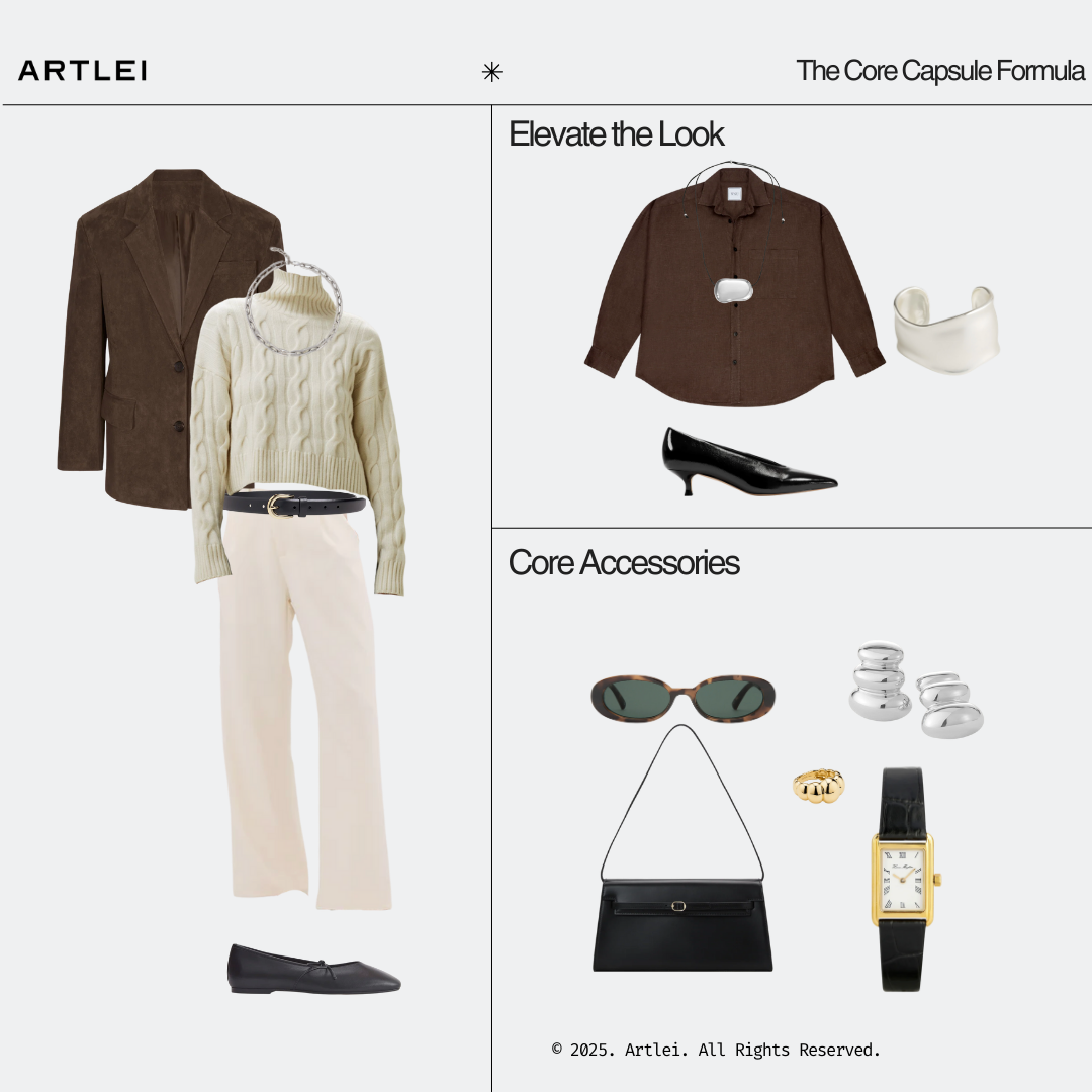Every capsule piece works in multiple ways, so you get dozens of looks from a small, intentional wardrobe.