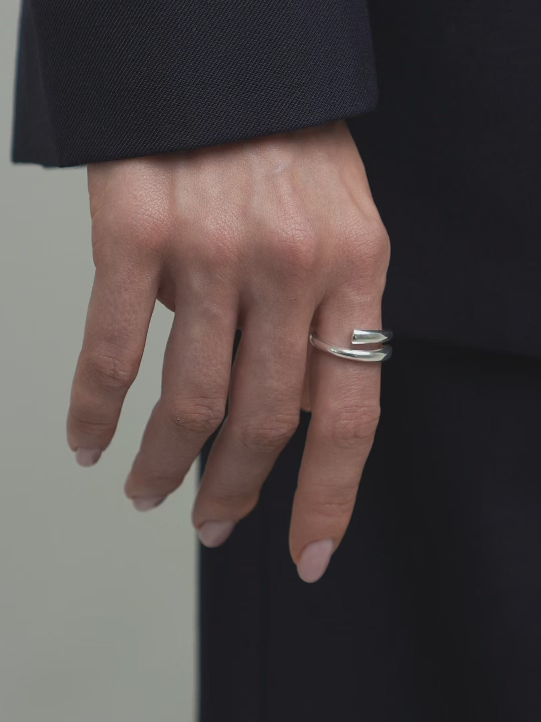 Works beautifully on both slender and fuller fingers, balancing the hand through its compact, layered silhouette.