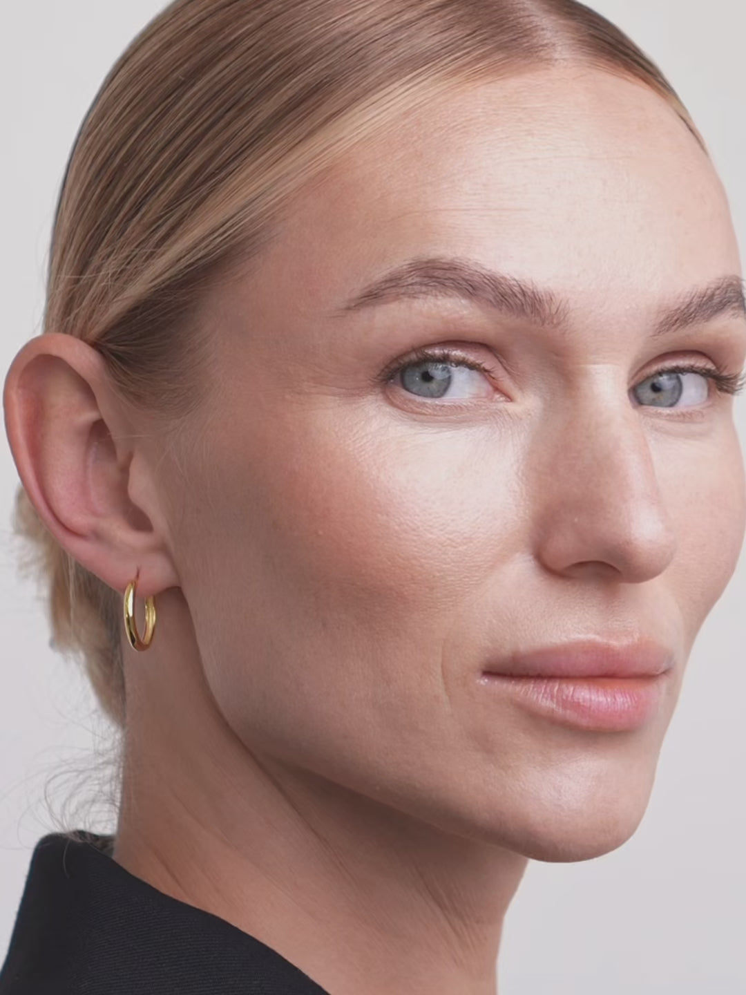 A refined, small-scale hoop designed to sit close to the ear and bring quiet balance to the face.