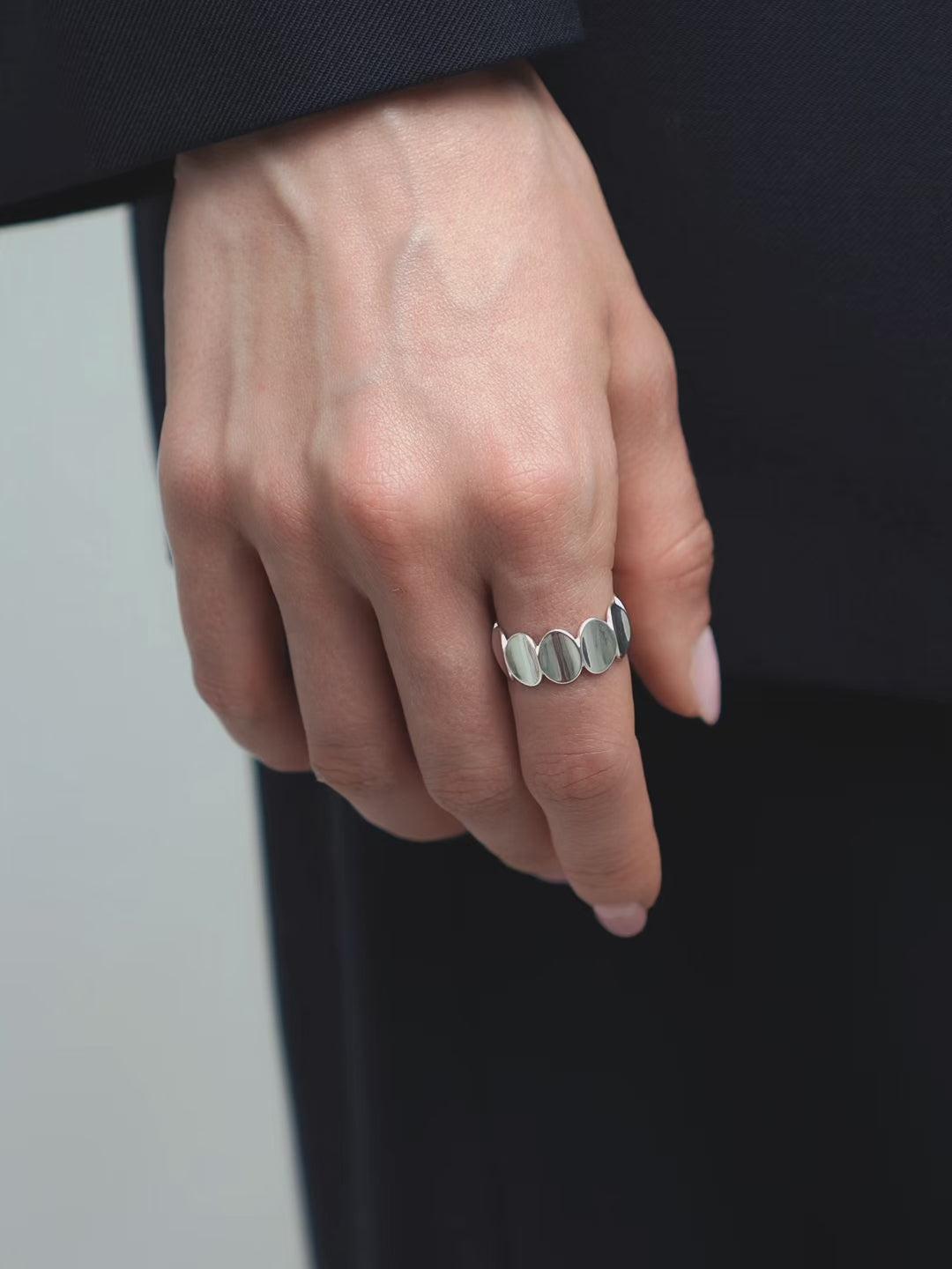 - On medium to larger fingers, it blends strength and fluidity for sculptural presence.