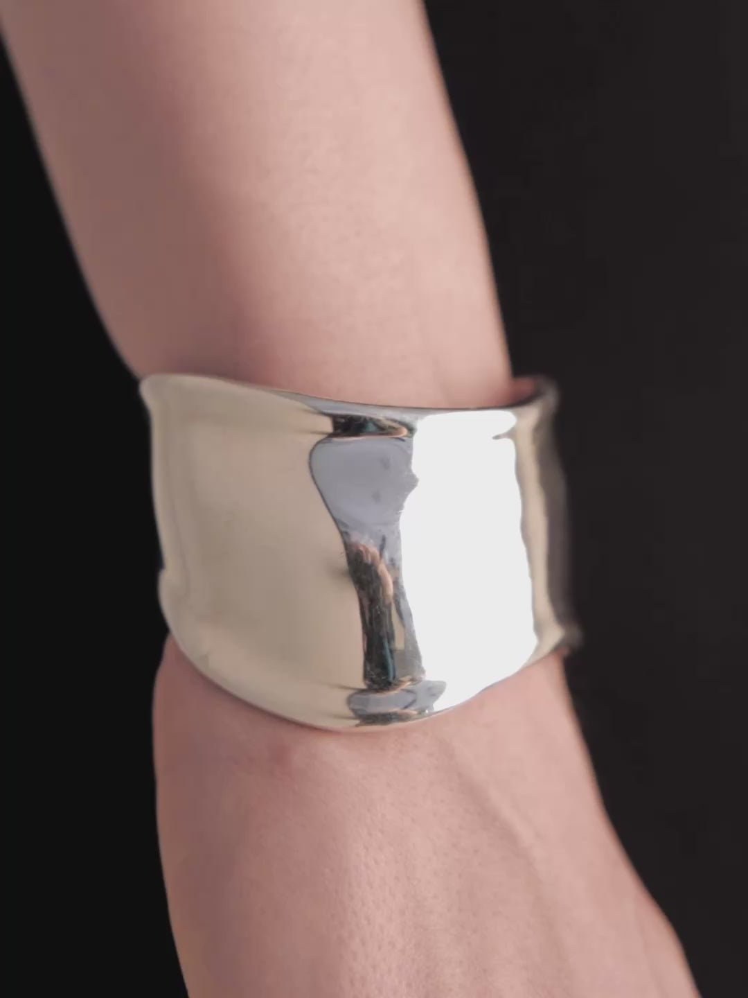 A bold, fluid form that curves gently around the wrist with sculptural ease.