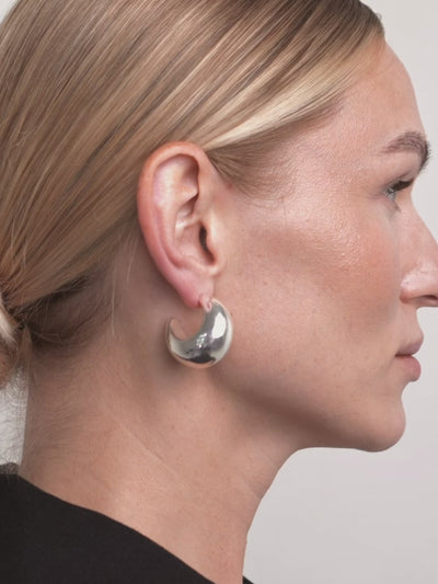 A mega-scale sculptural dome earring designed to anchor the face with confidence and presence.